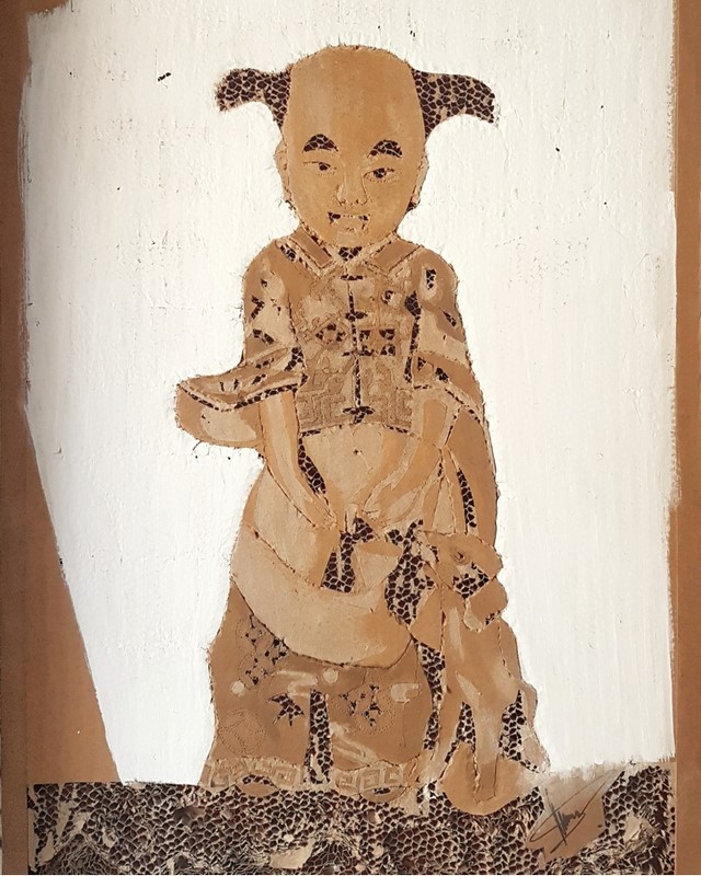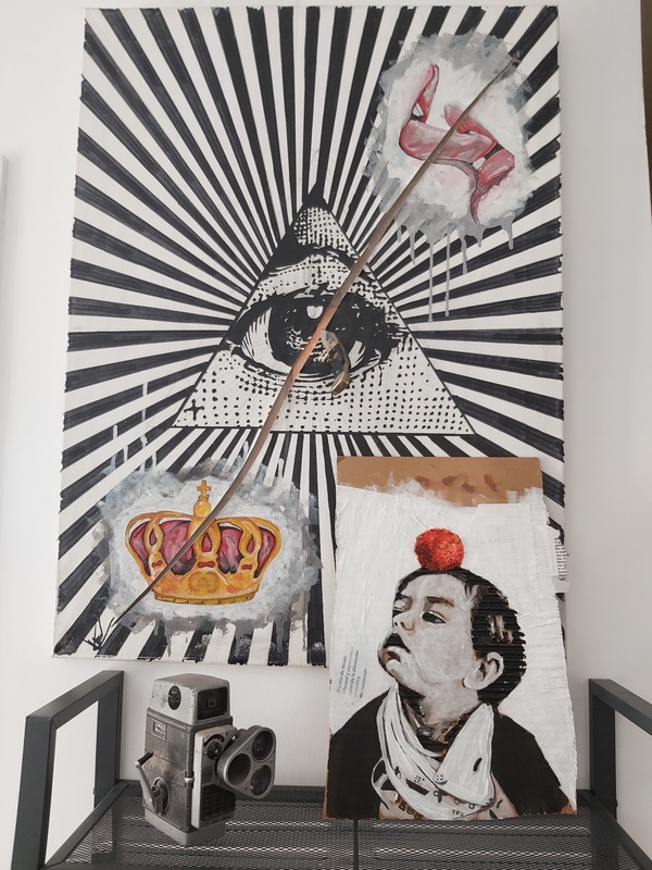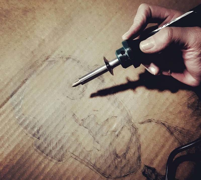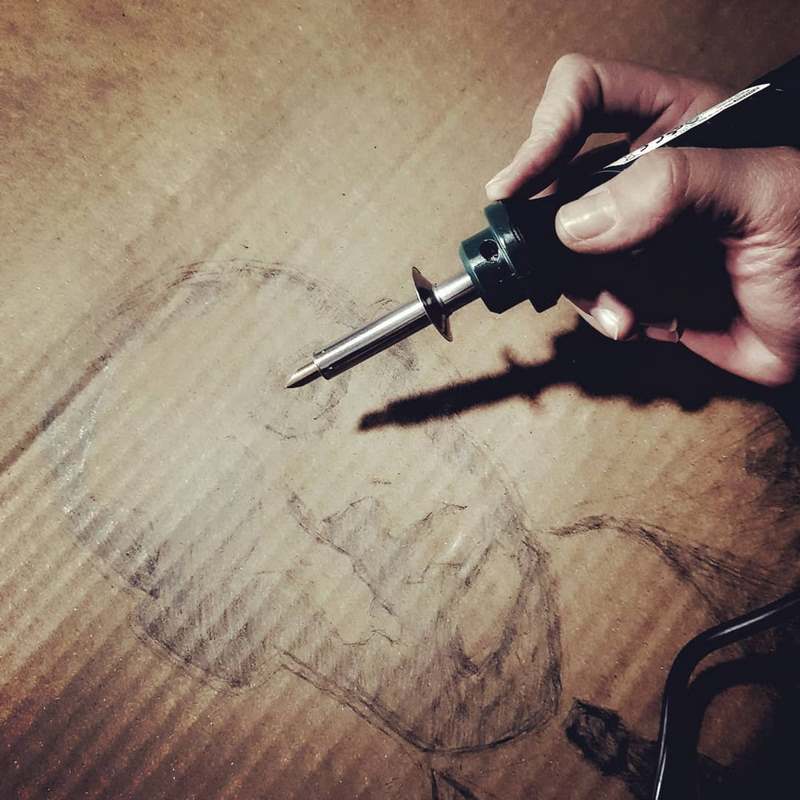 En mi trabajo, utilizo una técnica mixta sobre cartón, combinando habilidades en acrílico y el fascinante elemento del fuego. Esta combinación me permite crear piezas únicas que capturan la esencia del trashart y destacan la belleza que puede encontrarse en lo descartado y olvidado.