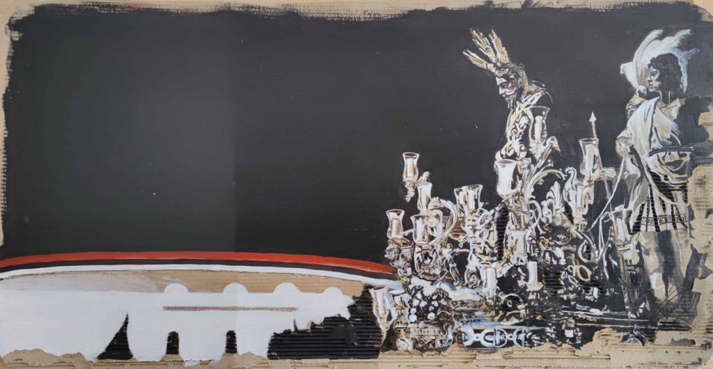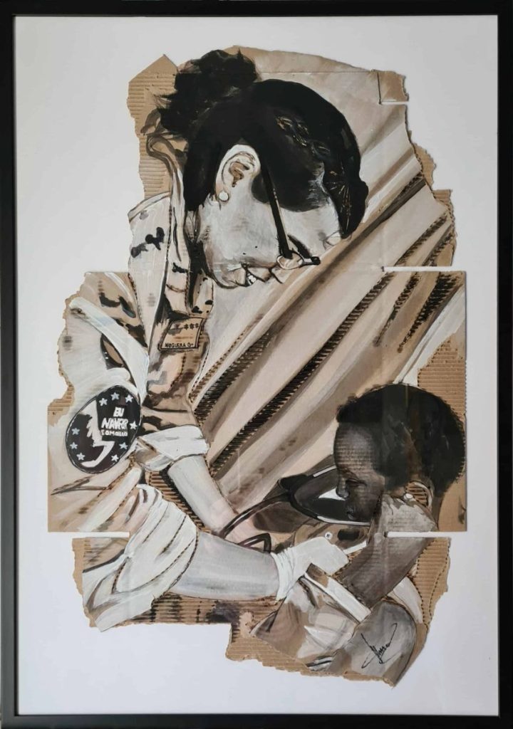 Descripción del proyecto Destino. Djibouti 2019. Técnica mixta sobre cartón; acrílico y fuego. Galería