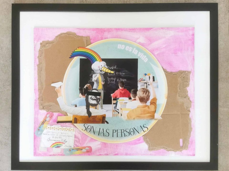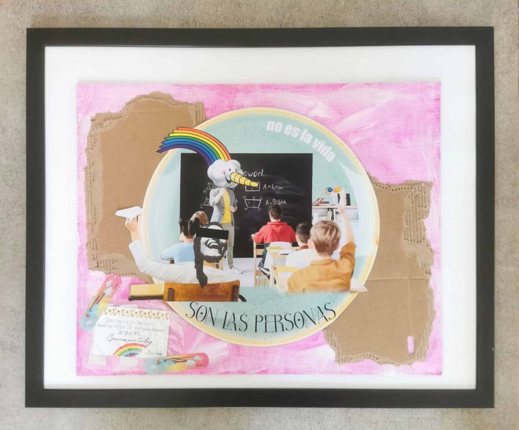 Descripción del proyecto No es la vida, son las personas (las que enseñan). Obra realizada con técnica mixta collage. Galería